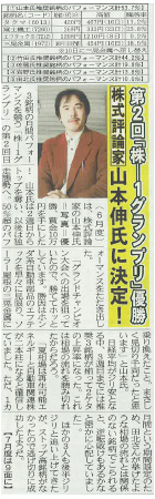 5月から 夕刊フジ と 『ネットマネー』 の共同企画で始まった ”株-1(カブワン)グランプリ” の 第2回目 = 6月度に山本伸が参加しました。